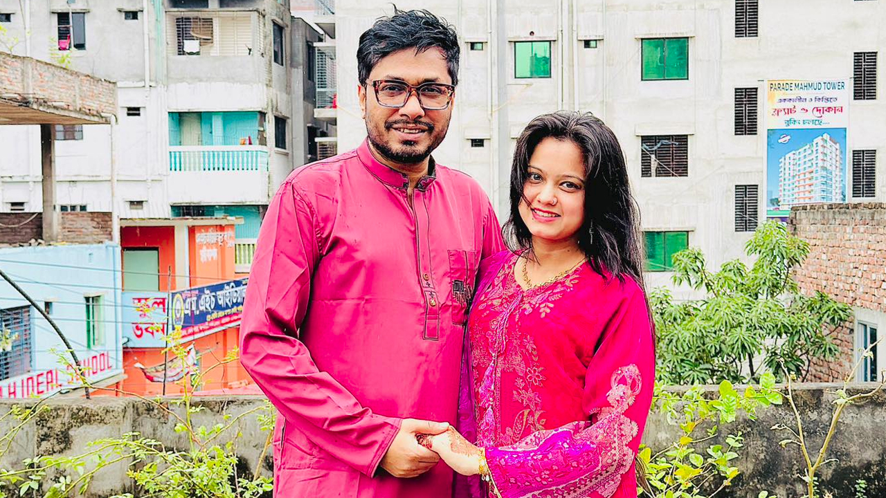 অভিনেতা জামিল হোসেন ও অভিনেত্রী মুনমুন আহমেদ মুন একই রঙের পোশাকে ধরা দিয়ে জানিয়েছেন ঈদের শুভেচ্ছা।
