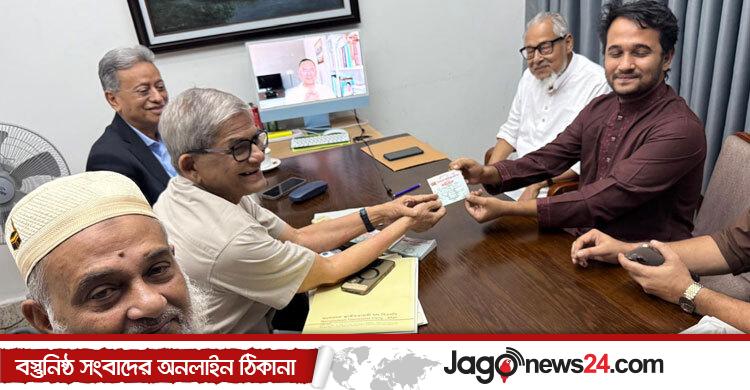 বিএনপি মহাসচিব মির্জা ফখরুল ইসলাম আলমগীরের কাছ থেকে দলের সদস্যপদ নিচ্ছেন মীর মাহবুবুর রহমান স্নিগ্ধ/ছবি: বিএনপি মিডিয়া সেল জুলাই গণঅভ্যুত্থানে