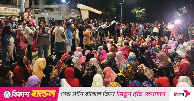 তালা ভেঙে বের হয়ে ছাত্রীদের বিক্ষোভ