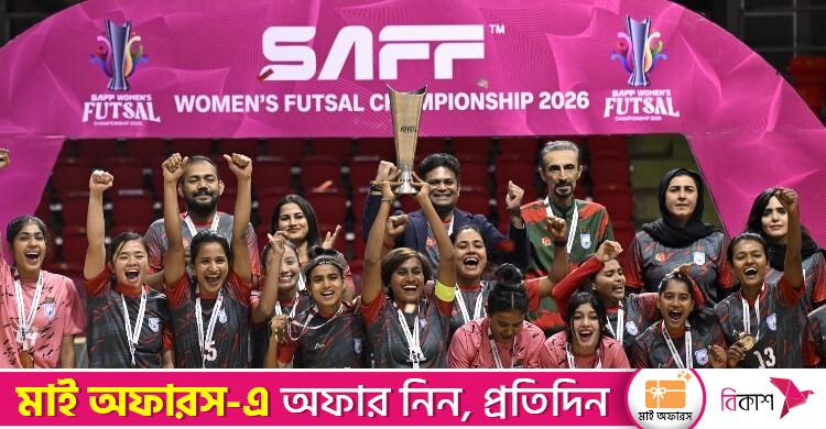 প্রথম সাফ নারী ফুটসালের শিরোপা জেতা বাংলাদেশ দল থাইল্যান্ড থেকে সন্ধ্যায় ঢাকায় ফিরছে। অপরাজিত চ্যাম্পিয়ন হওয়া দলটিকে বাফুফে বিশেষ সংবর্ধনা