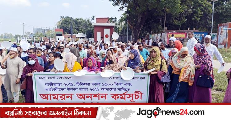 গাইবান্ধায় থালা হাতে শিক্ষক-কর্মচারীদের বিক্ষোভ