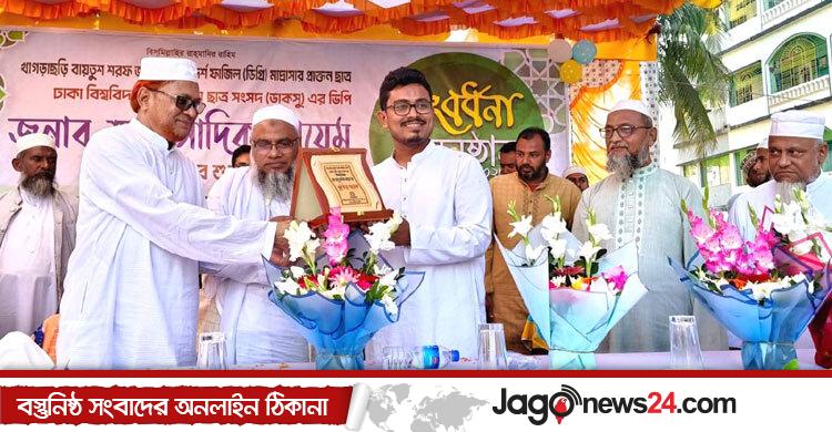 ঢাকা বিশ্ববিদ্যালয় কেন্দ্রীয় ছাত্র সংসদের (ডাকসু) ভিপি আবু সাদিক কায়েমকে নিজ জেলা খাগড়াছড়িতে সংবর্ধনা দেওয়া হয়েছে। বুধবার (২৬ নভেম্বর) বিকেলে