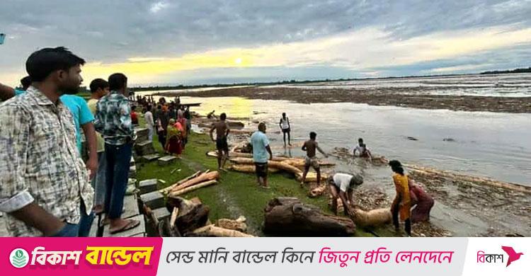 ভারতে প্রবল বৃষ্টি, কুড়িগ্রাম সীমান্তে ভেসে আসছে গাছ