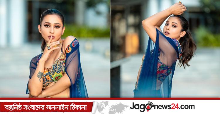 রঙিন কারুকাজ আর নীলের মোহনায় নজরকাড়া মিমি