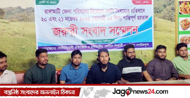 রাঙ্গামাটি পার্বত্য জেলা পরিষদে নিয়োগ প্রক্রিয়ায় কোটা বৈষম্য ও অনিয়মের প্রতিবাদে বৃহস্পতি-শুক্রবার হরতালে ডাক দিয়েছেন শিক্ষার্থীরা। বুধবার (১৯ নভেম্বর) বিকেল