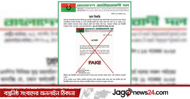 বাংলাদেশ জাতীয়তাবাদী দলের (বিএনপি) সিনিয়র যুগ্ম মহাসচিব অ্যাডভোকেট রুহুল কবির রিজভীর সই জাল করে সামাজিক যোগাযোগমাধ্যমে ভুয়া প্রেস বিজ্ঞপ্তি ছড়ানোর